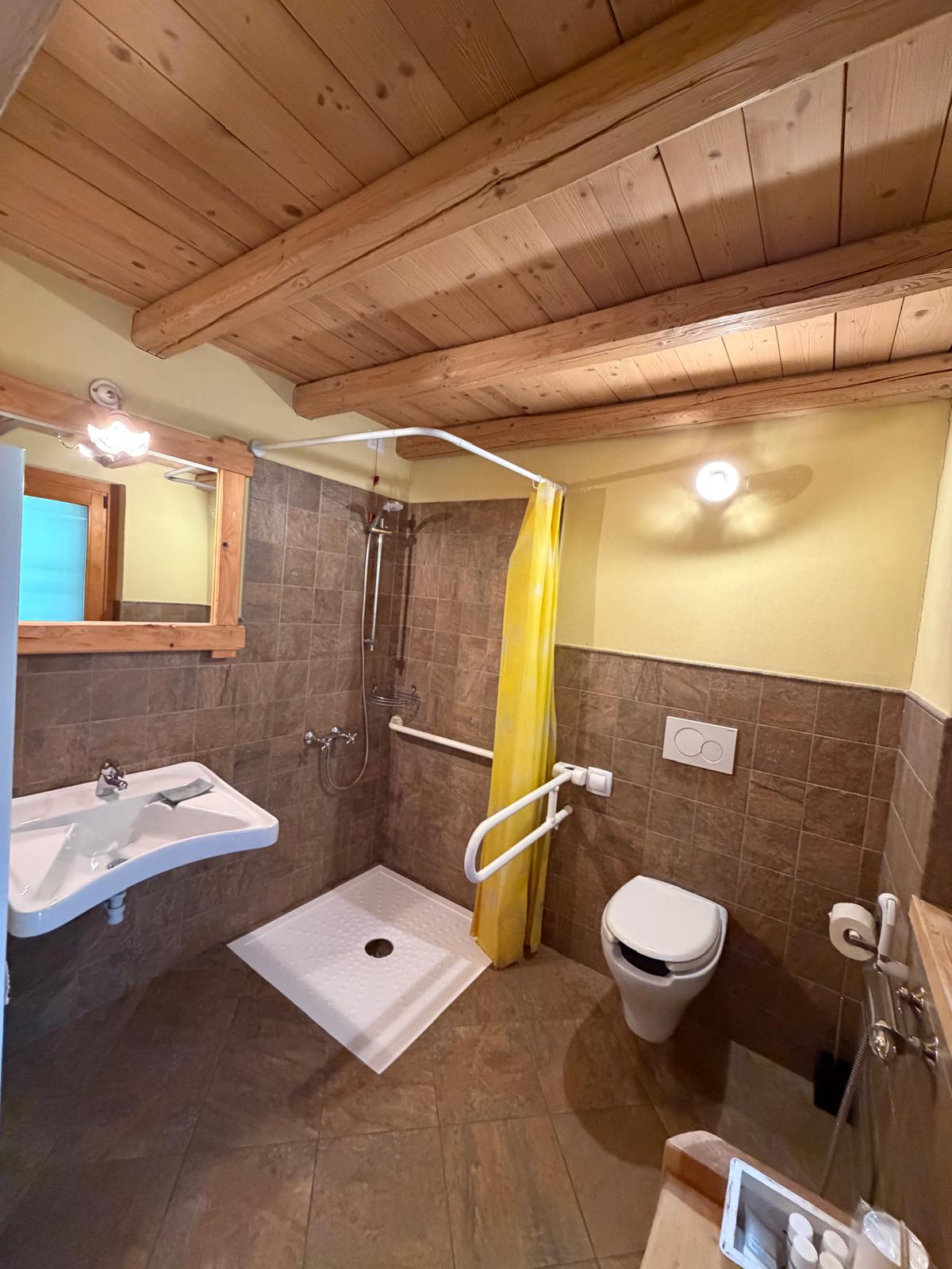 ⮞ Bagno con doccia, WC e lavabo per disabili, phon