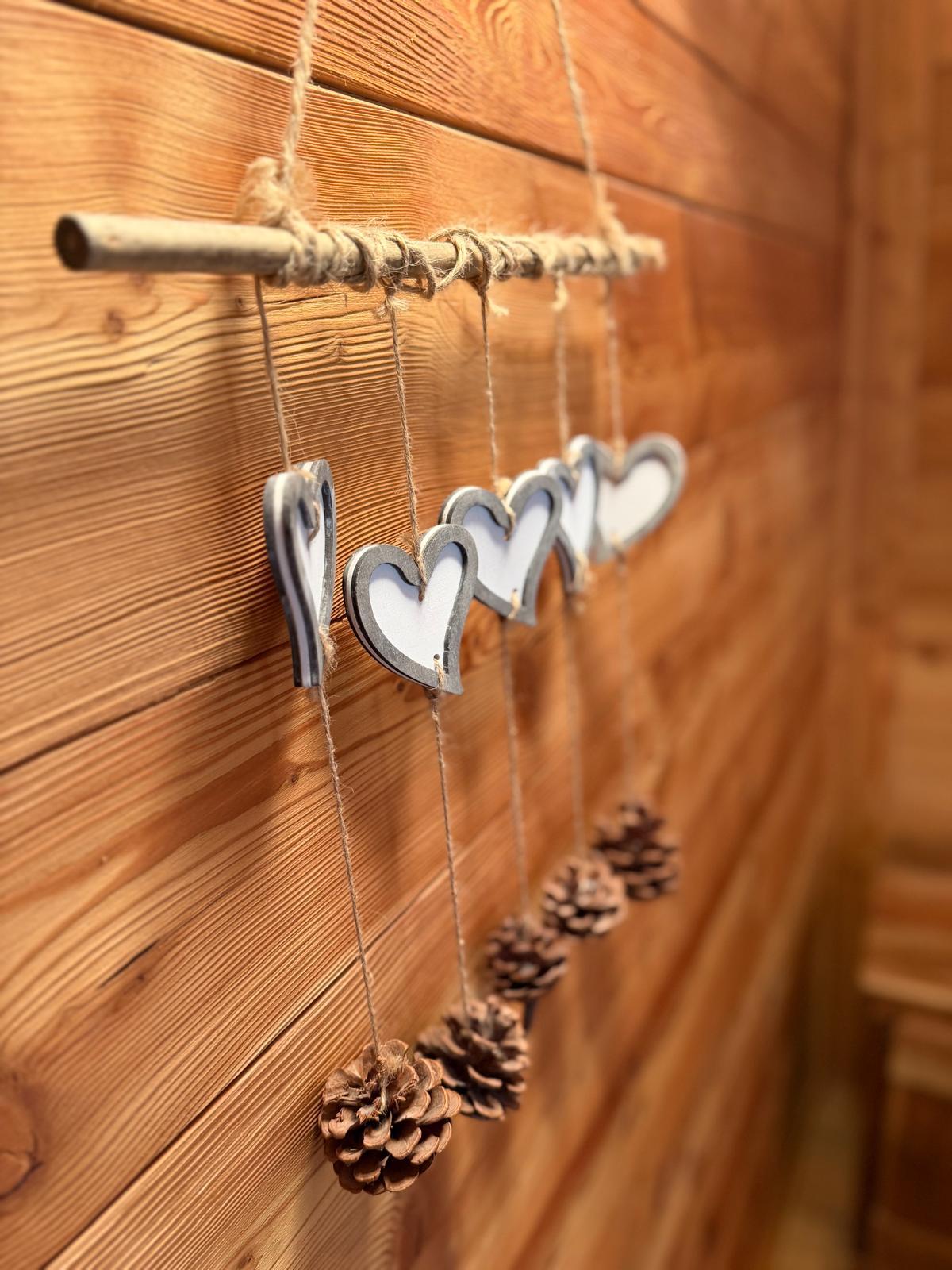 Pavimento in legno di larice, mobili e pareti realizzati interamente da Alex con legname di recupero.