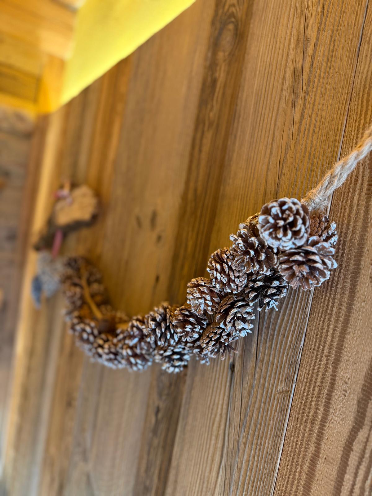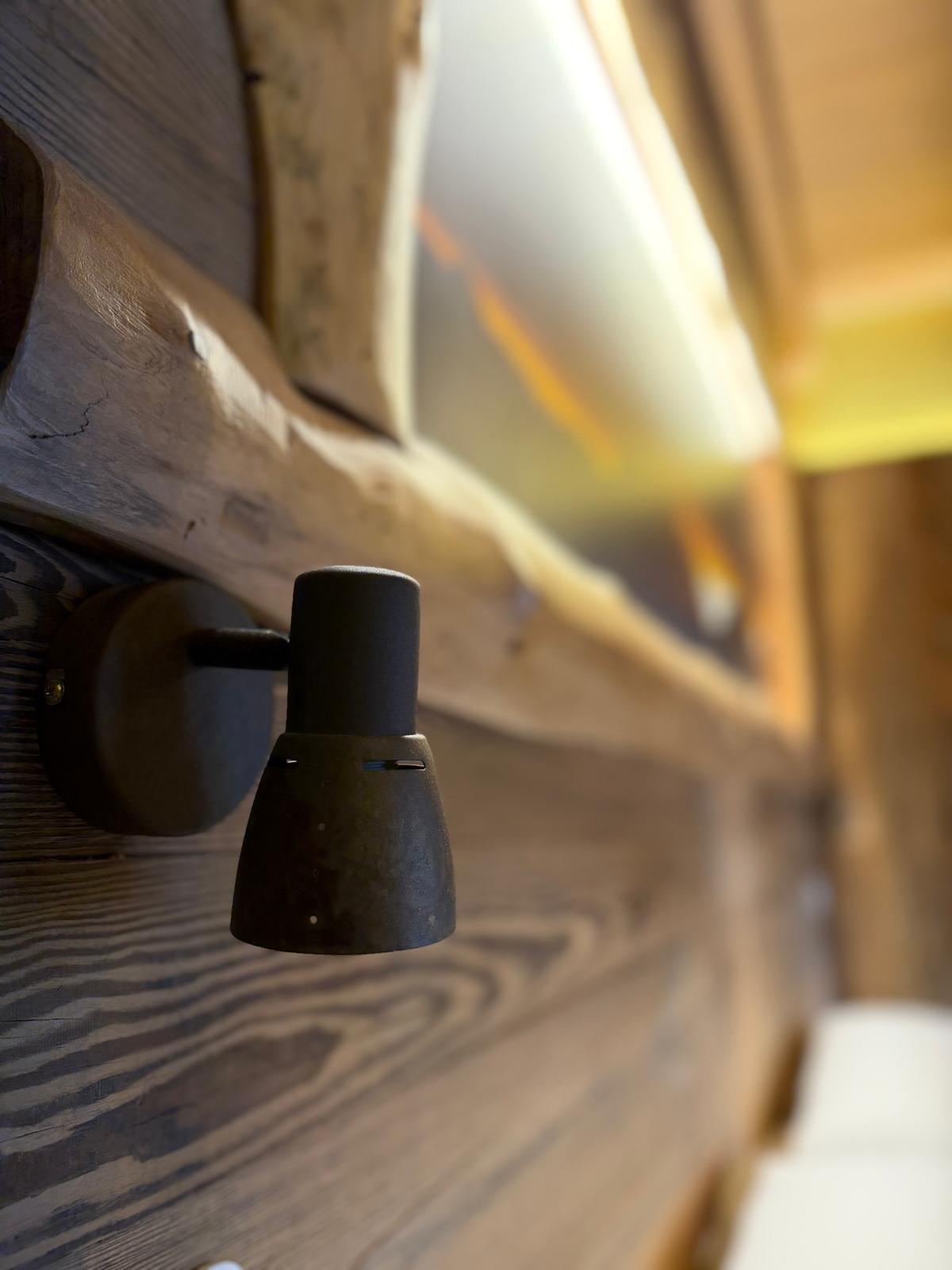 Pavimento in legno di larice, mobili e pareti realizzati interamente da Alex con legname di recupero.