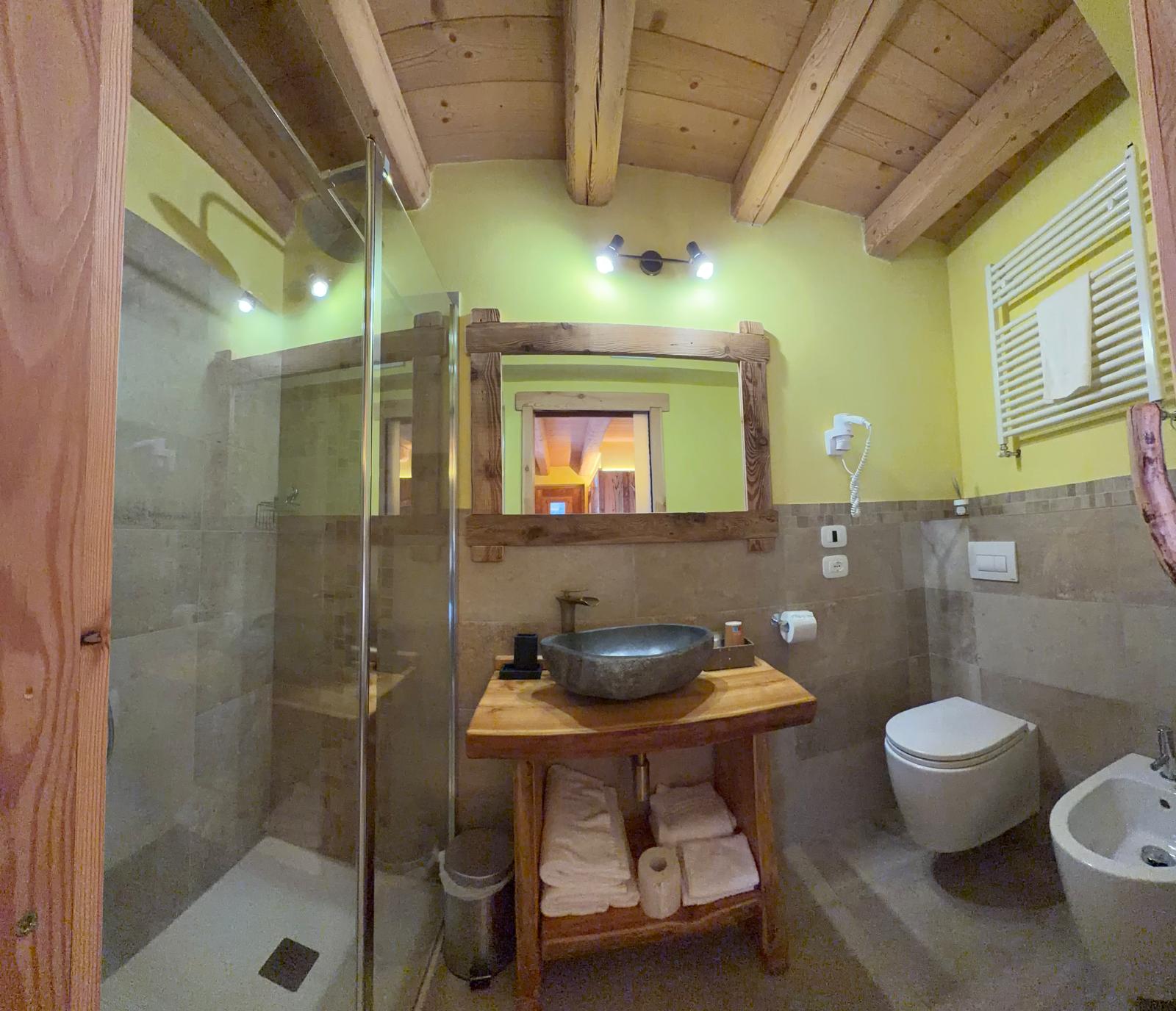 ⮞ Bagno con doccia, WC, bidet, phon, scalda salviette